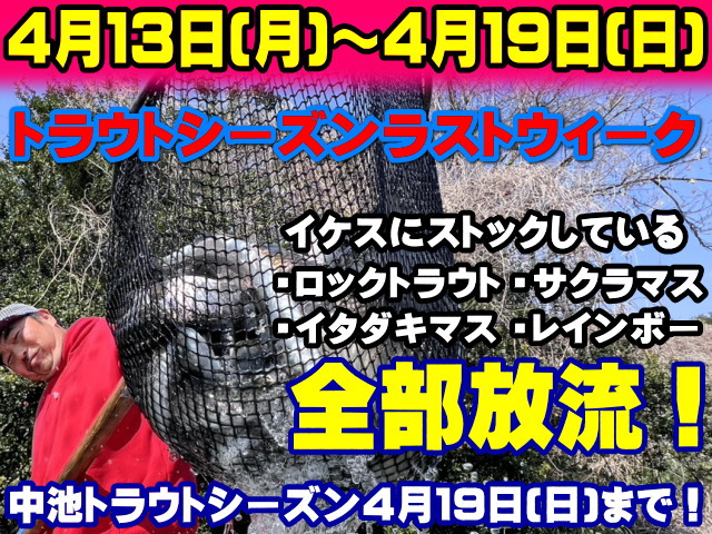 トラウトシーズン4月19日まで! ![]() 営業時間7:00~21:00(トラウトシーズン)