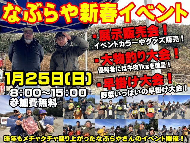 ![]() 三连休每天都是超大规模放流! 1月10日(周六) 来自神山水产:顶鳟(ITADAKIMASU)鱼(中~超大规格)🚚 整车直送・大规模放流! 1月11日(周日) 三连休第2天:❄️ 寒冷天气特别大放流! 1月12日(周一) 三连休第3天:🎣 Rock Trout 放流! ✨ 一年仅此一次的感恩回馈超大放流!连续三天,精彩不断,千万别错过! |