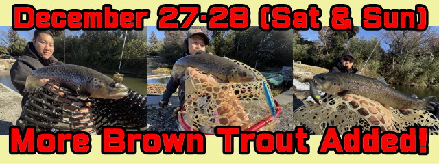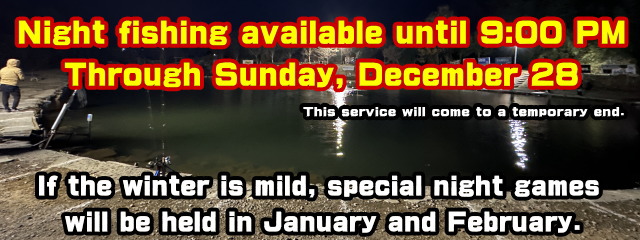 Year-End & New Year Massive Stocking Event! December 27 – January 4 Year-End & New Year Special Program! Premium Trout (Itadaki Trout)Actively stocked on weekdays as well