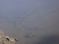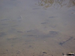 | 昨日、あれだけ獲ったのに。。。まだ中池ではトラウトたちが悠々と泳いでいます。中には60cmを越えるイワナも隠れる所なく、泳いでいましたよ! |