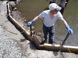 すっかり水が引けたので午後は私(養田)も作業に加わり、池の改造がスタート!