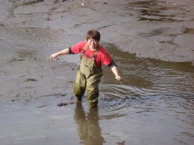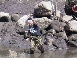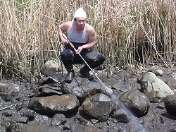 池の底は砂と泥なのでチョット気を抜くと沈んではまってしまいます。 |