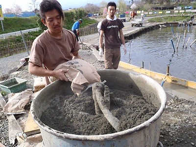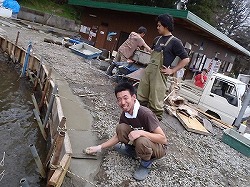 | 橋●さんと清●さんもコンクリート打ちのお手伝いに!お陰様で予定よりもはるかに早く作業が進んでいます。 |