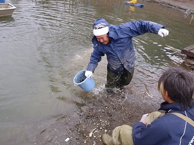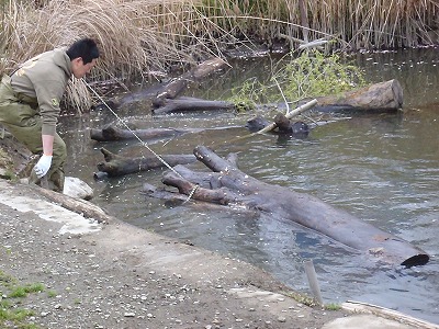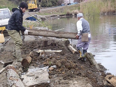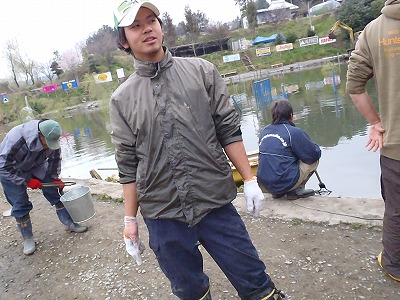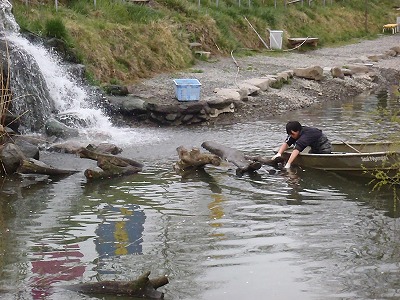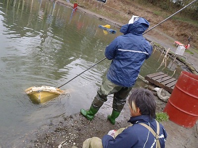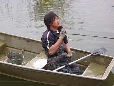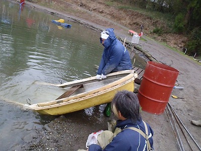 | せっせとボートを救出する山ちゃん(^_^;) |
